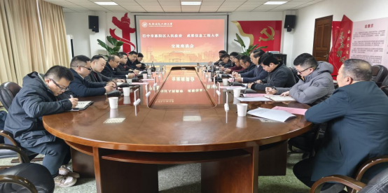 会上,张斌兵对恩阳区人民政府一行的到来表示热烈欢迎,简要介绍了学校发展历程与学科建设优势。双方共同观看了巴中市恩阳区与成都市信息工程大学宣传片,并就恩阳区区位禀赋、产业布局及学校在人工智能、自动化、创新创业等领域的特色优势进行初步交流。