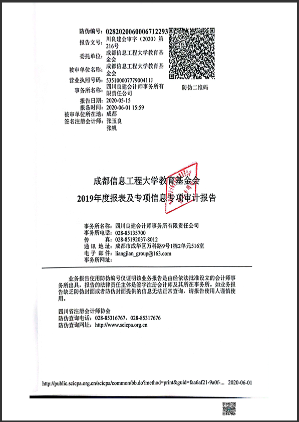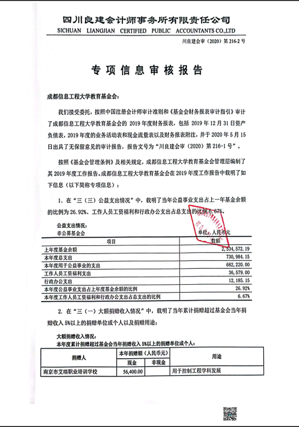 基金会2019年专项信息审核报告